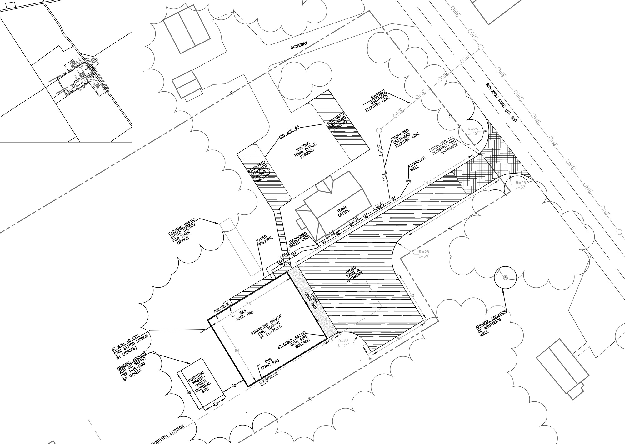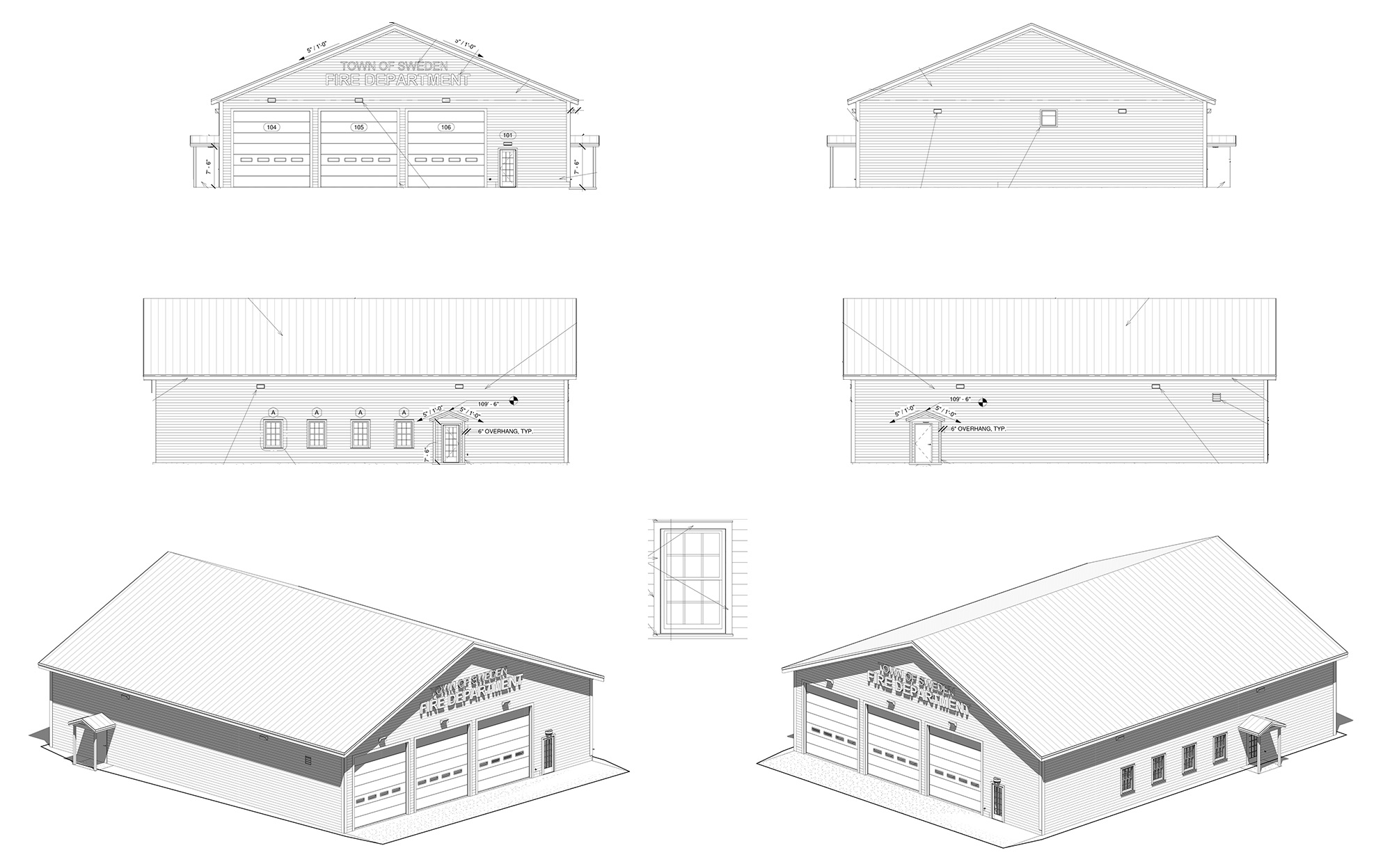 The town has received plans for the fire station, and expects to be putting the project out to bid in October of 2023. Elevations and site plans are available below (click on the image to view in a larger format).